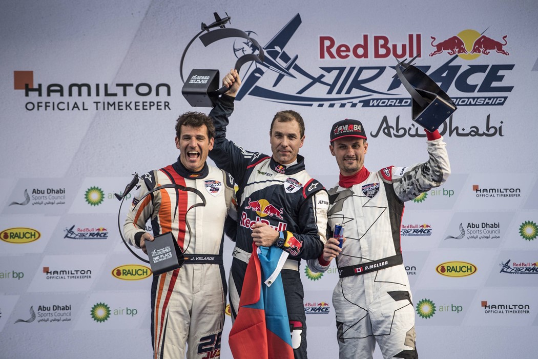O espanhol Juan Velarde também viveu nos céus de Abu Dhabi momentos de grande emoção, com uma prestação que resultou num inédito segundo lugar – a sua melhor classificação de sempre na Red Bull Air Race. O pódio ficou completo com o canadiano Pete McLeod, piloto que é um dos mais novos do pelotão da classe rainha (Master Class) e tem tido um desempenho bastante irregular ao longo dos anos. Já o Campeão do Mundo, o alemão Matthias Dolderer, não foi além do quatro lugar devido a uma penalização recebida na grande final.