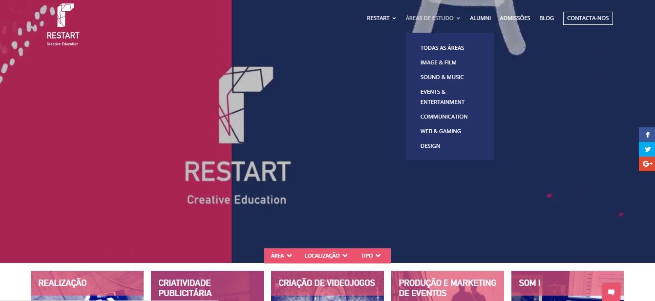 Lançado no mês em que está previsto o início de vários cursos semestrais da escola, o novo site tem uma interface facilitadora que promove uma interação mais intuitiva, direta e organizada com o utilizador. Por sua vez, encontra-se dividido pelas áreas que compõem a oferta formativa do instituto como Image & Film, Communication, Creative Arts, Games & Animation, Sound & Music, Events & Entertainment e Web Tech, presentes no campus de Lisboa e do Porto. A partir de agora, será também possível conversar através de um chat, no qual os utilizadores poderão colocar as suas dúvidas à medida que navegam no site, motivando, assim, uma ponte de comunicação instantânea com a Restart.