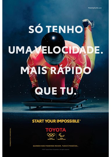 A primeira campanha de marketing global da Toyota "Start Your Impossible" celebra a parceria de oito anos entre a Toyota Motor Corporation e o Comité Olímpico Internacional na categoria de mobilidade.