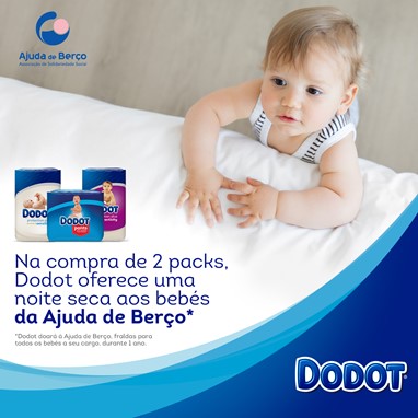 Com o objetivo de contribuir para o desenvolvimento social e melhorar a qualidade de vida e integração dos mais desfavorecidos, a marca Dodot compromete-se a doar uma fralda por cada dois packs que venda no decorrer das feiras de produtos para bebés que irão decorrer em diferentes hipermercados e supermercados.