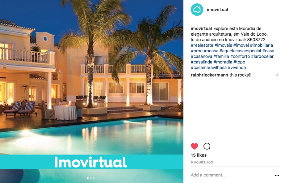 Ralph Rieckermann, de nacionalidade alemã, músico e ex baixista da banda de rock Scorpions, da qual foi membro entre 1992 e 2004, mostrou o seu entusiasmo por uma casa em Vale do Lobo, uma das zonas mais luxuosas do Algarve, através de um comentário a uma publicação no Instagram do Imovirtual: