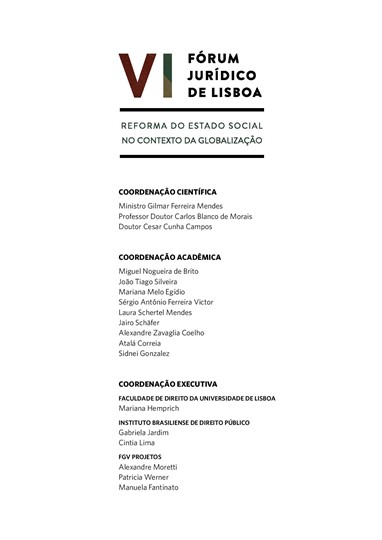 A coordenação científica ficou a cargo de Gilmar Ferreira Mendes, Ministro do Supremo Tribunal Federal, do Professor Doutor Carlos Blanco de Morais, Presidente do Instituto de Ciências Jurídico-Políticas e coordenador científico do Centro de Investigação de Direito Público, e do Doutor Cesar Cunha Campos, director da Fundação Getúlio Vargas projetos, no Brasil.