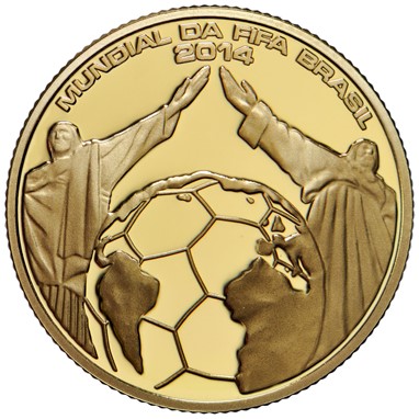 ?Para assinalar a 20ª edição do Campeonato do Mundo de Futebol, cuja fase final decorre no Brasil de 12 de Junho a 13 de Julho, a Imprensa Nacional-Casa da Moeda (INCM) preparou uma moeda comemorativa que assinala este acontecimento único que reúne 32 nações dos cinco continentes.